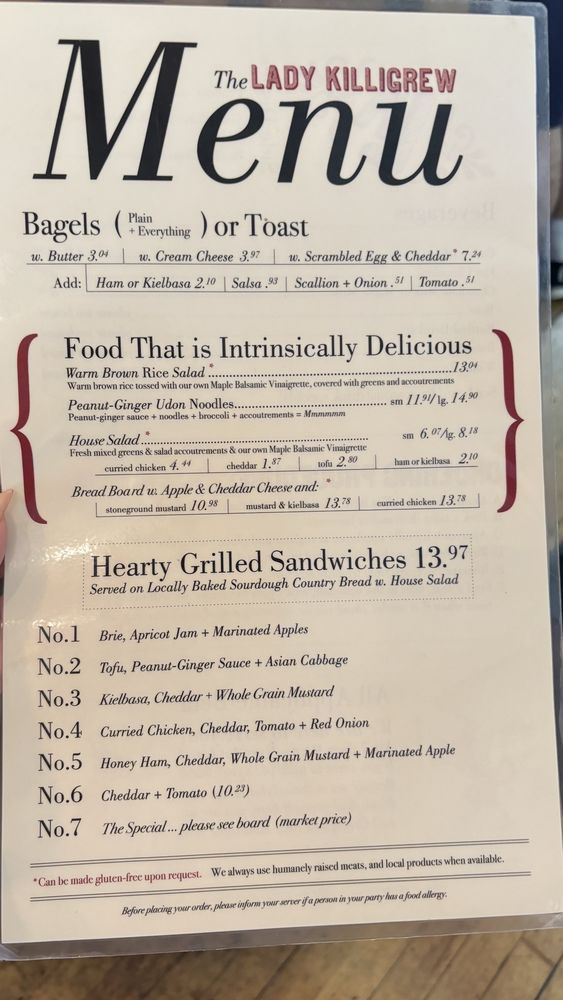 Introducing the menu at The Lady Killigrew Cafe, located in Montague, MA, offers a delightful selection of desserts, coffee & tea, sandwiches, and vegan options. The cafe provides a casual atmosphere with outdoor seating overlooking a scenic view of the river. Customers rave about the excellent service, fresh and delicious food, and the unique experience of dining in a bookstore. Popular menu items include the brie, apple, and apricot jam grilled sandwich, kielbasa with cheddar and sauerkraut on sourdough, and cold peanut udon noodles. The cafe is highly recommended for lunch, working, or simply relaxing with a cup of coffee. While some mention a lack of air conditioning on hot days, the overall experience is described as a hidden gem worth visiting for its quaint ambiance and picturesque setting.